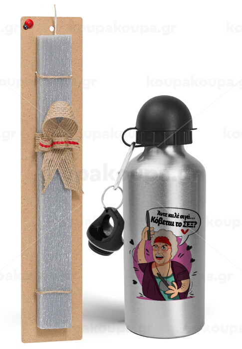 Αντε καλέ, σιγά, κόβεται το σέξ ;, Easter Set, metallic silver aluminum water bottle (500ml) & aromatic flat Easter candle (30cm) (GRAY)