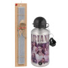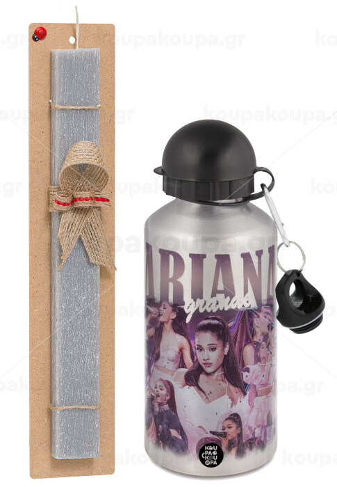 Ariana Grande, Easter Set, metallic silver aluminum water bottle (500ml) & aromatic flat Easter candle (30cm) (GRAY)