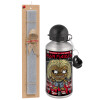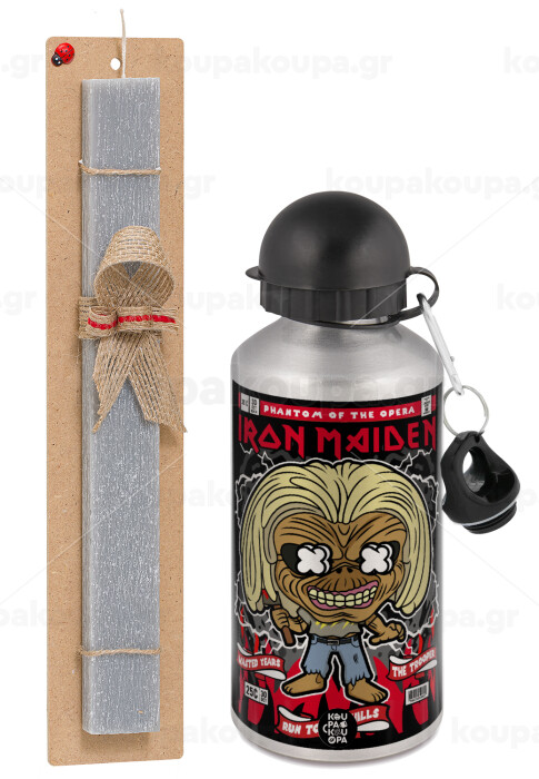 Iron maiden (eddie), Easter Set, metallic silver aluminum water bottle (500ml) & aromatic flat Easter candle (30cm) (GRAY)
