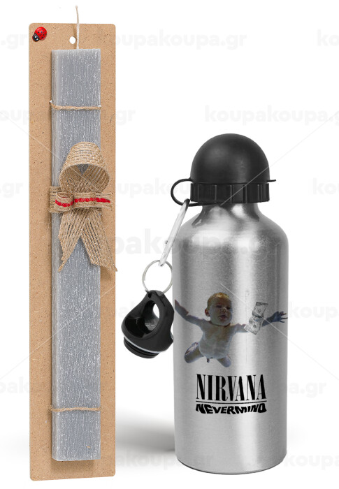 Nirvana nevermind, Easter Set, metallic silver aluminum water bottle (500ml) & aromatic flat Easter candle (30cm) (GRAY)