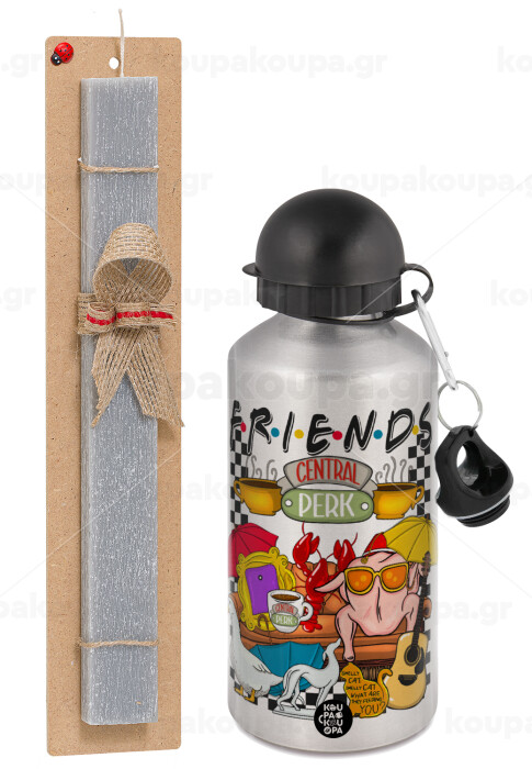 Friends, Easter Set, metallic silver aluminum water bottle (500ml) & aromatic flat Easter candle (30cm) (GRAY)