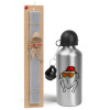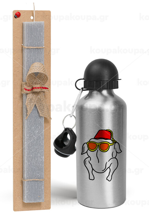 Friends turkey, Easter Set, metallic silver aluminum water bottle (500ml) & aromatic flat Easter candle (30cm) (GRAY)