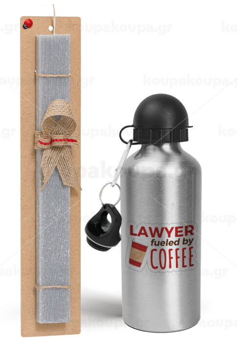 Lawyer fueled by coffee, Easter Set, metallic silver aluminum water bottle (500ml) & aromatic flat Easter candle (30cm) (GRAY)