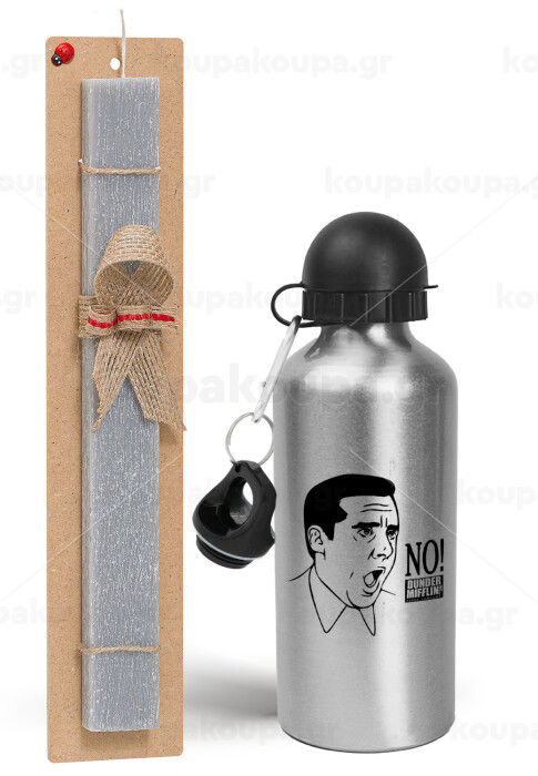 The office Michael NO!!!, Easter Set, metallic silver aluminum water bottle (500ml) & aromatic flat Easter candle (30cm) (GRAY)
