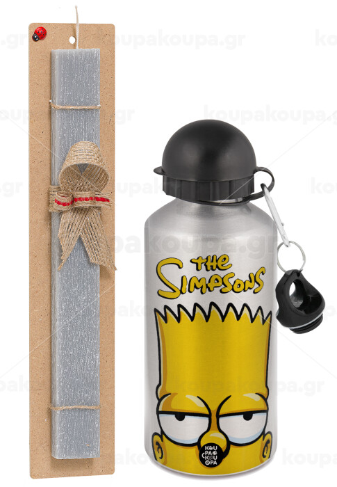 The Simpsons Bart, Easter Set, metallic silver aluminum water bottle (500ml) & aromatic flat Easter candle (30cm) (GRAY)