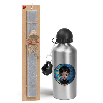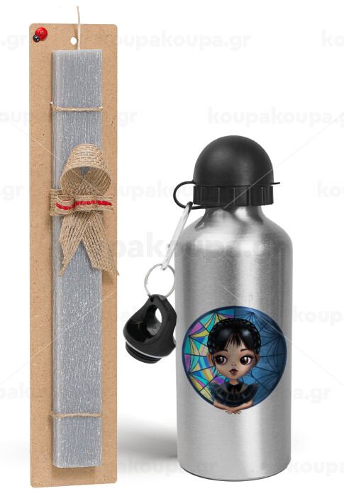 Wednesday big eyes, Easter Set, metallic silver aluminum water bottle (500ml) & aromatic flat Easter candle (30cm) (GRAY)