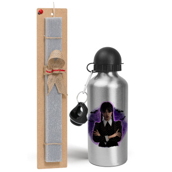 Wednesday moonlight, Easter Set, metallic silver aluminum water bottle (500ml) & aromatic flat Easter candle (30cm) (GRAY)