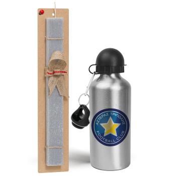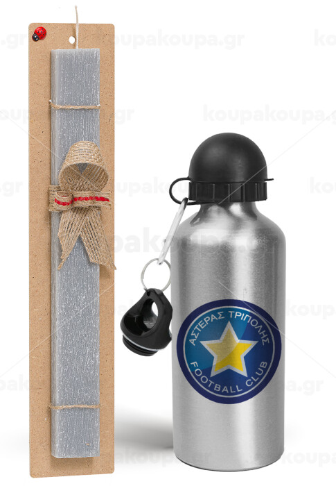 Asteras Tripolis, Easter Set, metallic silver aluminum water bottle (500ml) & aromatic flat Easter candle (30cm) (GRAY)