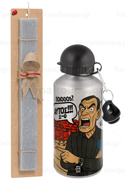 Μπαρτζό, Ποιος? Αυτός!!! 1-0, Easter Set, metallic silver aluminum water bottle (500ml) & aromatic flat Easter candle (30cm) (GRAY)