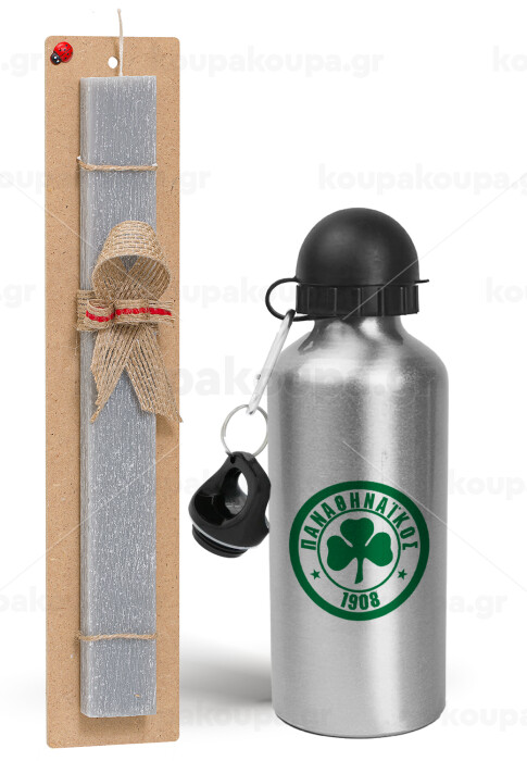 ΠΑΟ Παναθηναϊκός, Easter Set, metallic silver aluminum water bottle (500ml) & aromatic flat Easter candle (30cm) (GRAY)