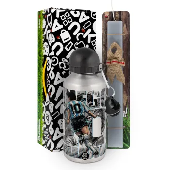 Diego Maradona (Ντιέγκο Μαραντόνα), Easter Set, metallic silver aluminum water bottle (500ml) & aromatic flat Easter candle (30cm) (GRAY)