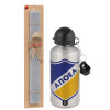 FC ΑΠΟΕΛ Λευκωσίας, Easter Set, metallic silver aluminum water bottle (500ml) & aromatic flat Easter candle (30cm) (GRAY)