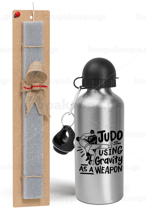 Judo using gravity as a weapon, Easter Set, metallic silver aluminum water bottle (500ml) & aromatic flat Easter candle (30cm) (GRAY)