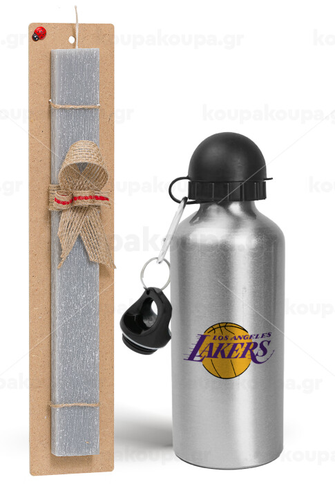 Lakers, Easter Set, metallic silver aluminum water bottle (500ml) & aromatic flat Easter candle (30cm) (GRAY)