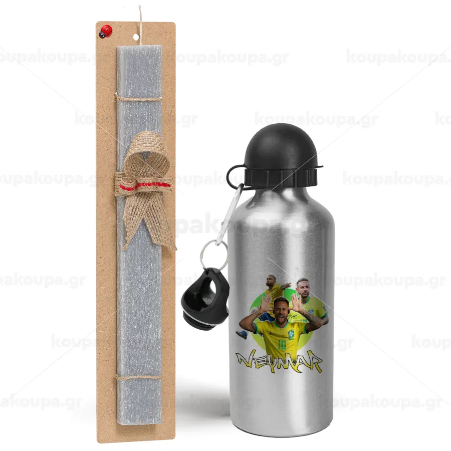 Neymar JR, Easter Set, metallic silver aluminum water bottle (500ml) & aromatic flat Easter candle (30cm) (GRAY)