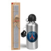 Paris Saint-Germain F.C., Easter Set, metallic silver aluminum water bottle (500ml) & aromatic flat Easter candle (30cm) (GRAY)