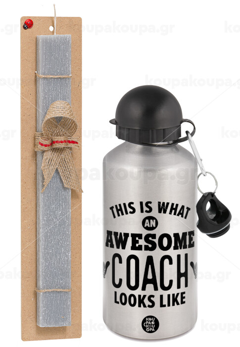This is what an awesome COACH looks like!, Easter Set, metallic silver aluminum water bottle (500ml) & aromatic flat Easter candle (30cm) (GRAY)