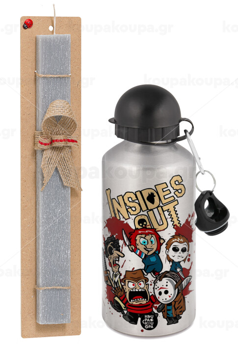 Halloween Inside out, Easter Set, metallic silver aluminum water bottle (500ml) & aromatic flat Easter candle (30cm) (GRAY)