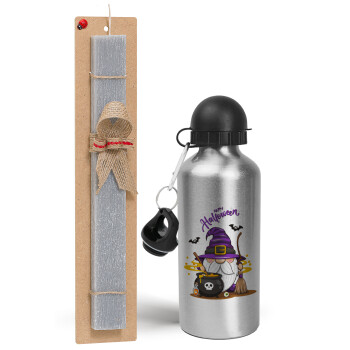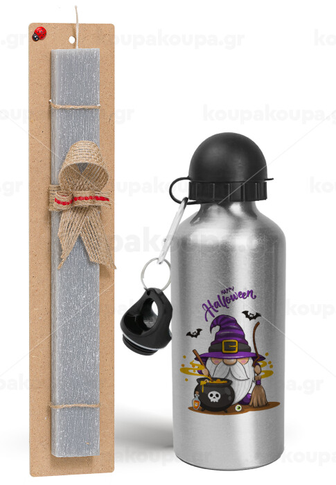 Happy Halloween (Χαλοουίν), Easter Set, metallic silver aluminum water bottle (500ml) & aromatic flat Easter candle (30cm) (GRAY)