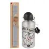 Τι έχεις? Τίποτα!, Easter Set, metallic silver aluminum water bottle (500ml) & aromatic flat Easter candle (30cm) (GRAY)