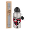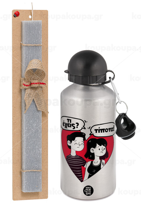 Τι έχεις? Τίποτα!, Easter Set, metallic silver aluminum water bottle (500ml) & aromatic flat Easter candle (30cm) (GRAY)
