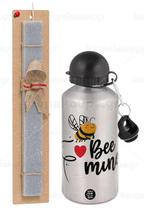 Bee mine!!!, Easter Set, metallic silver aluminum water bottle (500ml) & aromatic flat Easter candle (30cm) (GRAY)