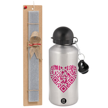 Heart hidden MSG, try me!!!, Easter Set, metallic silver aluminum water bottle (500ml) & aromatic flat Easter candle (30cm) (GRAY)