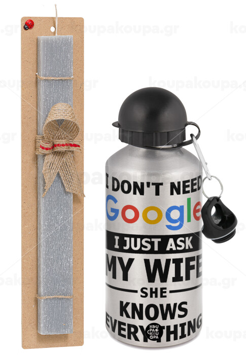 I don't need Google, just ask my WIFE, Easter Set, metallic silver aluminum water bottle (500ml) & aromatic flat Easter candle (30cm) (GRAY)