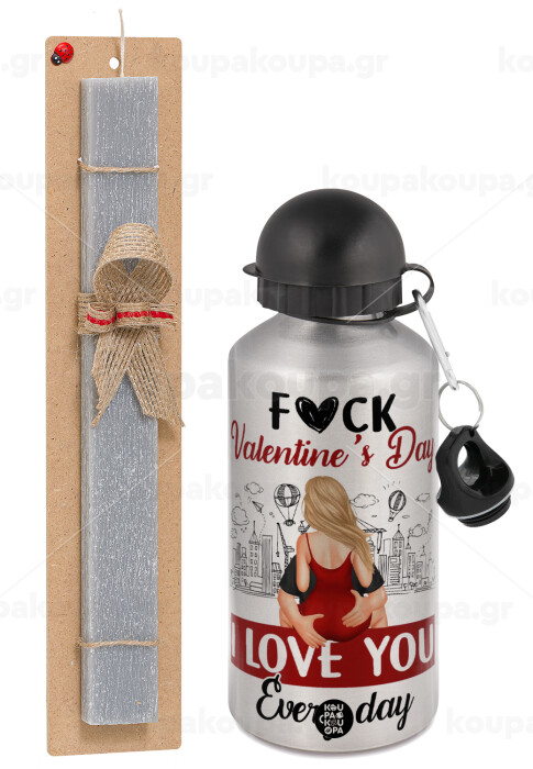 I love You Everyday , Easter Set, metallic silver aluminum water bottle (500ml) & aromatic flat Easter candle (30cm) (GRAY)