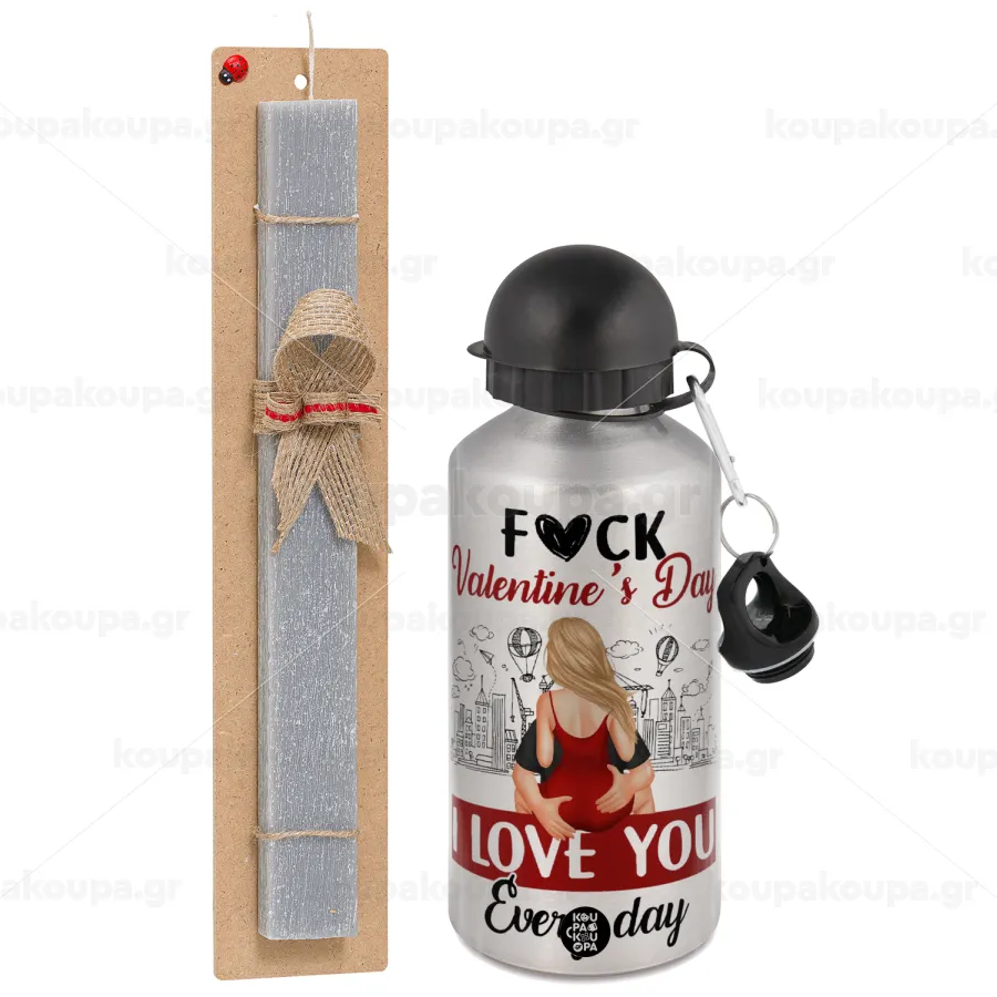 I love You Everyday , Easter Set, metallic silver aluminum water bottle (500ml) & aromatic flat Easter candle (30cm) (GRAY)