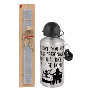 I Love You for Your Personality But that D... Is a Huge Bonus , Easter Set, metallic silver aluminum water bottle (500ml) & aromatic flat Easter candle (30cm) (GRAY)