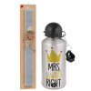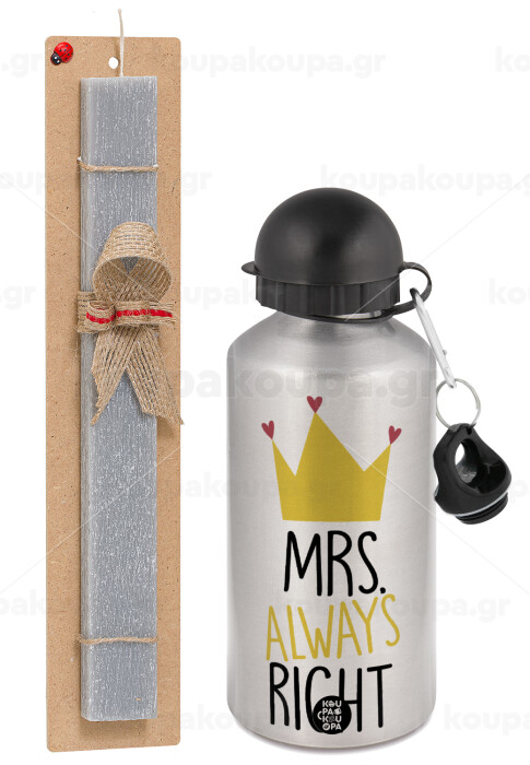 Mrs "Always" right, Easter Set, metallic silver aluminum water bottle (500ml) & aromatic flat Easter candle (30cm) (GRAY)