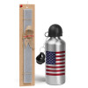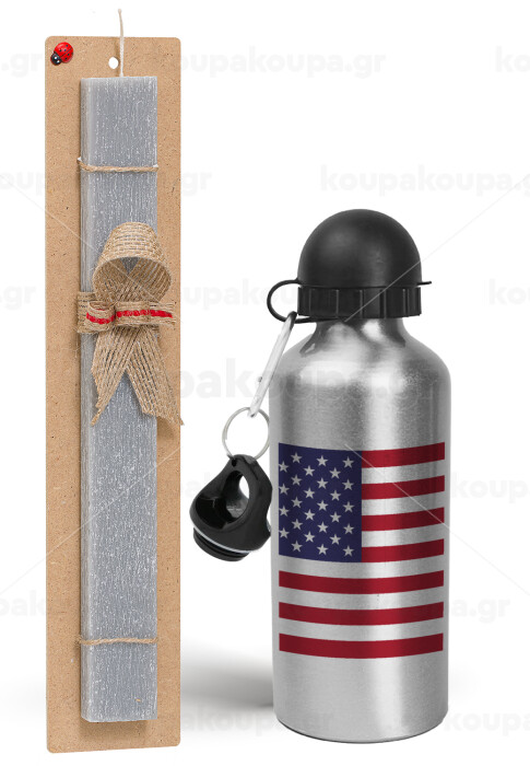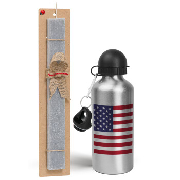 USA Flag, Easter Set, metallic silver aluminum water bottle (500ml) & aromatic flat Easter candle (30cm) (GRAY)