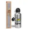 Cyprus flag, Easter Set, metallic silver aluminum water bottle (500ml) & aromatic flat Easter candle (30cm) (GRAY)