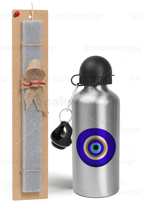 Το μάτι, Easter Set, metallic silver aluminum water bottle (500ml) & aromatic flat Easter candle (30cm) (GRAY)