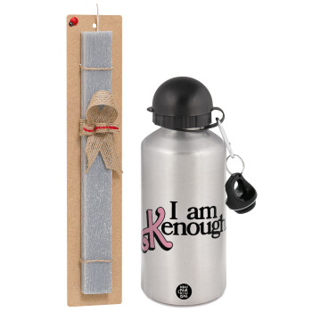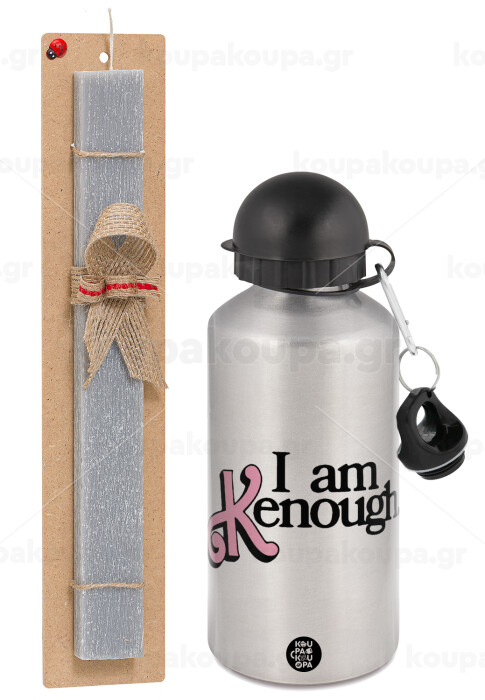 Barbie, i am Kenough, Easter Set, metallic silver aluminum water bottle (500ml) & aromatic flat Easter candle (30cm) (GRAY)