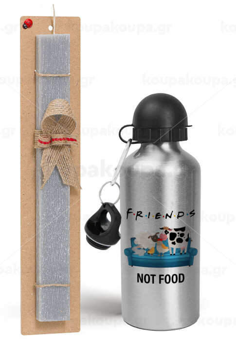 friends, not food, Easter Set, metallic silver aluminum water bottle (500ml) & aromatic flat Easter candle (30cm) (GRAY)