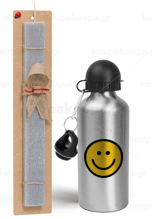 Smile classic, Easter Set, metallic silver aluminum water bottle (500ml) & aromatic flat Easter candle (30cm) (GRAY)