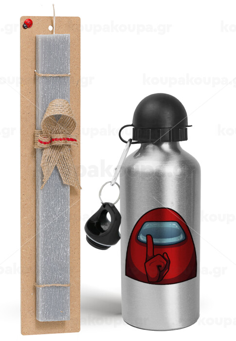 Among US, Easter Set, metallic silver aluminum water bottle (500ml) & aromatic flat Easter candle (30cm) (GRAY)