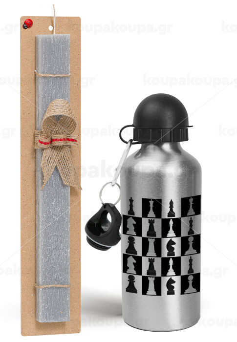 Chess set, Easter Set, metallic silver aluminum water bottle (500ml) & aromatic flat Easter candle (30cm) (GRAY)