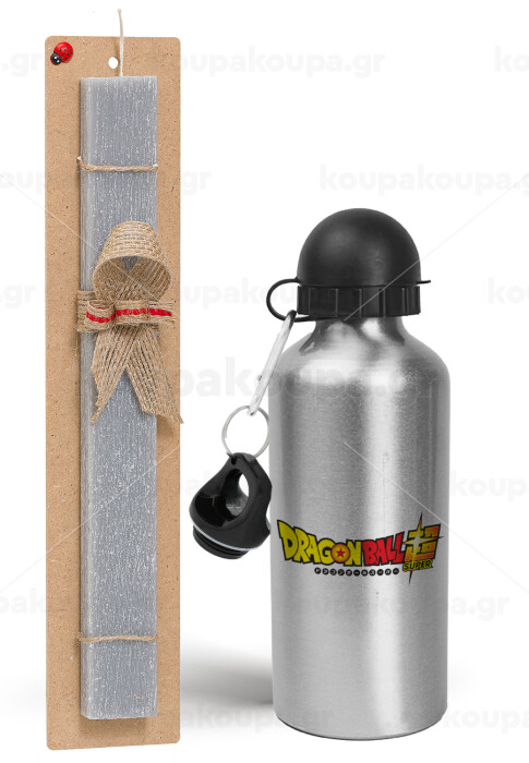 DragonBallZ, Easter Set, metallic silver aluminum water bottle (500ml) & aromatic flat Easter candle (30cm) (GRAY)