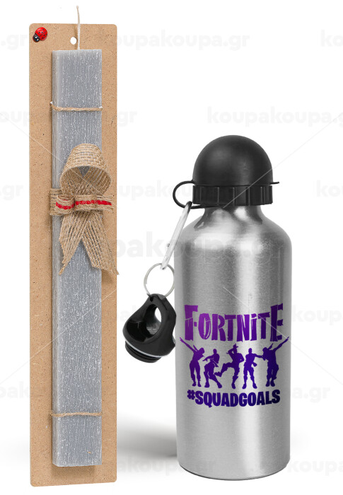 Fortnite #squadgoals, Easter Set, metallic silver aluminum water bottle (500ml) & aromatic flat Easter candle (30cm) (GRAY)