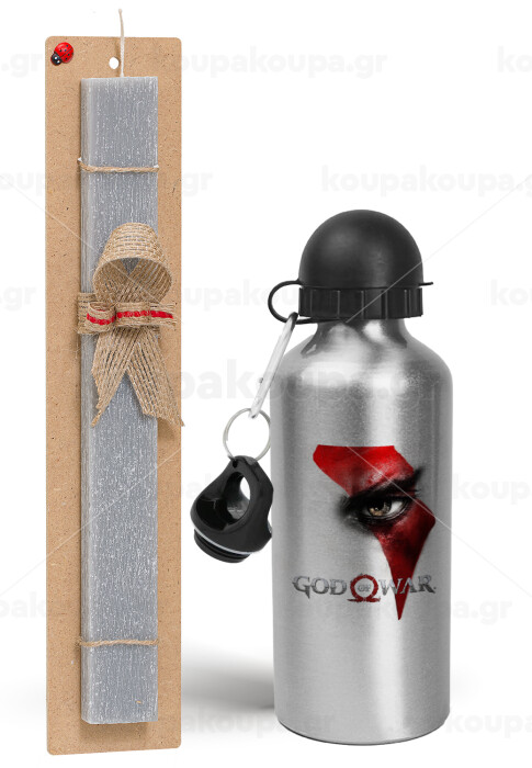 God of war Stratos, Easter Set, metallic silver aluminum water bottle (500ml) & aromatic flat Easter candle (30cm) (GRAY)