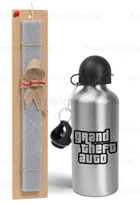 GTA (grand theft auto), Easter Set, metallic silver aluminum water bottle (500ml) & aromatic flat Easter candle (30cm) (GRAY)