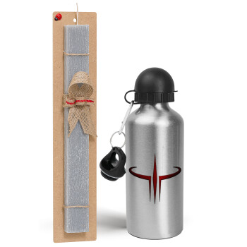 Quake 3 arena, Easter Set, metallic silver aluminum water bottle (500ml) & aromatic flat Easter candle (30cm) (GRAY)