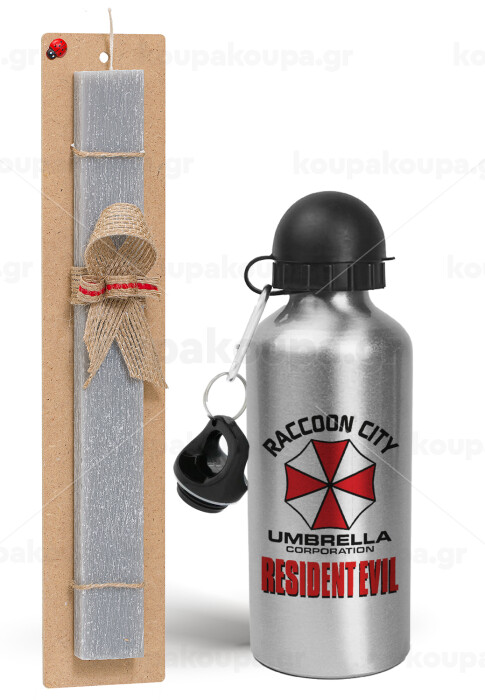 Resident Evil, Easter Set, metallic silver aluminum water bottle (500ml) & aromatic flat Easter candle (30cm) (GRAY)