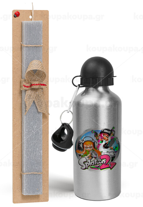 Splatoon 2, Easter Set, metallic silver aluminum water bottle (500ml) & aromatic flat Easter candle (30cm) (GRAY)