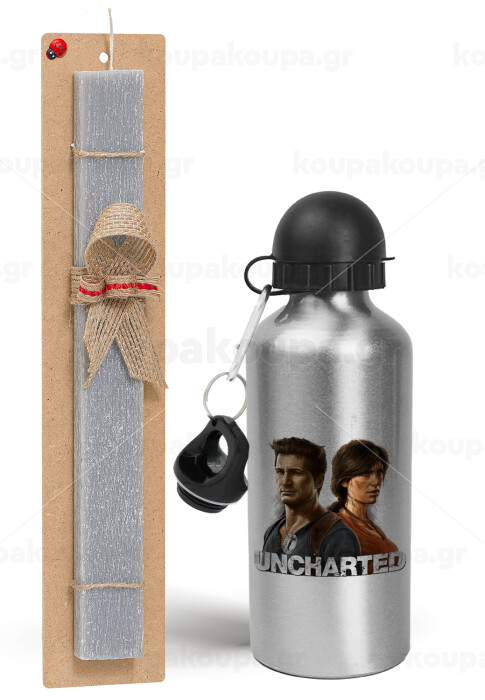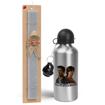 Uncharted, Easter Set, metallic silver aluminum water bottle (500ml) & aromatic flat Easter candle (30cm) (GRAY)
