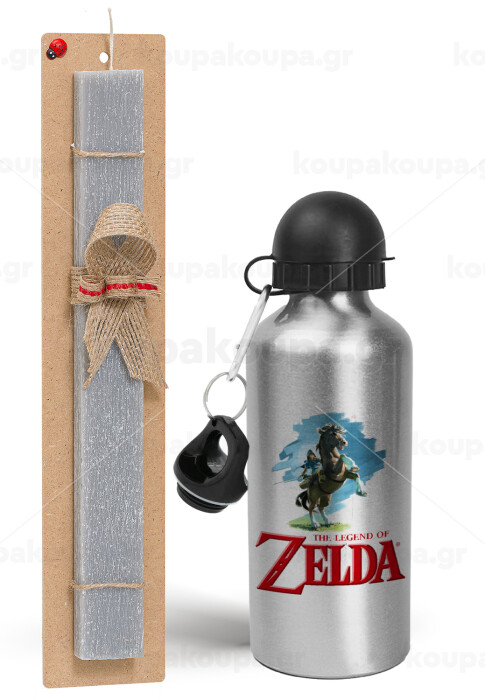 Zelda, Easter Set, metallic silver aluminum water bottle (500ml) & aromatic flat Easter candle (30cm) (GRAY)