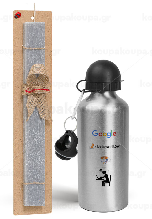 Google + Stack overflow + Coffee, Easter Set, metallic silver aluminum water bottle (500ml) & aromatic flat Easter candle (30cm) (GRAY)